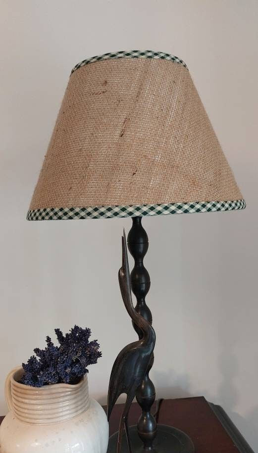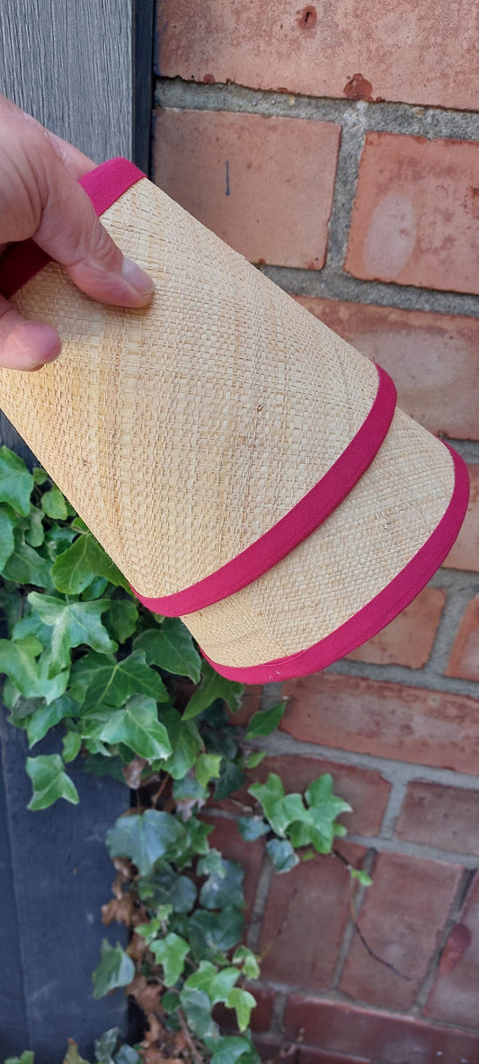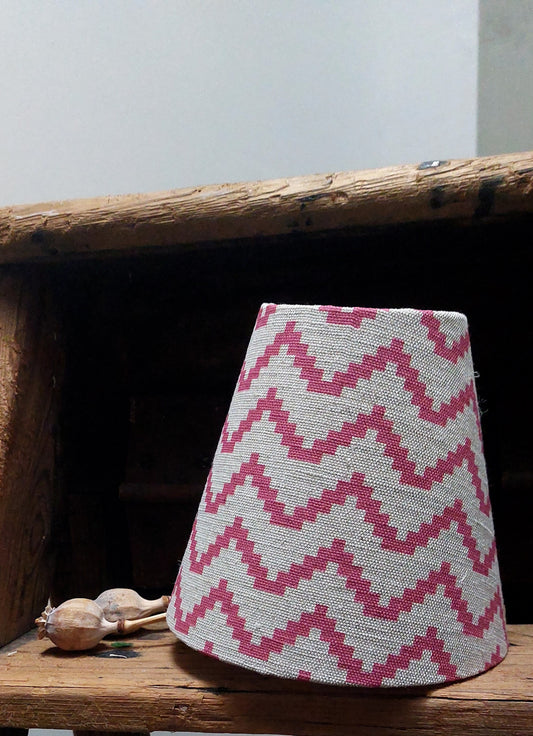 Salmon peach Hessian Candle Clip Lampshade with green trim