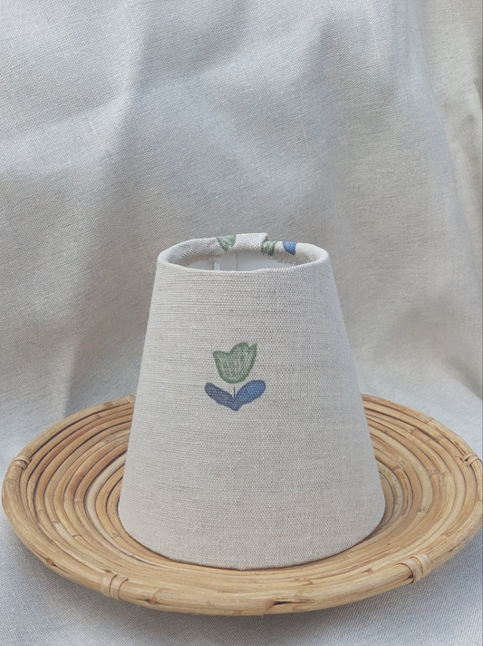 Pure Linen Blue Leaf Oatmeal Candle Clip Lampshade for Wall Lights Chandeliers