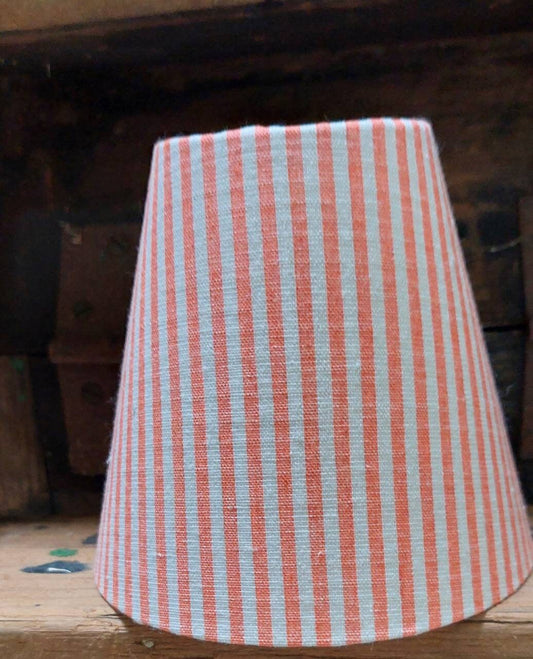Linen Orange Rasberry Ticking Stipes Candle Clip Lampshade