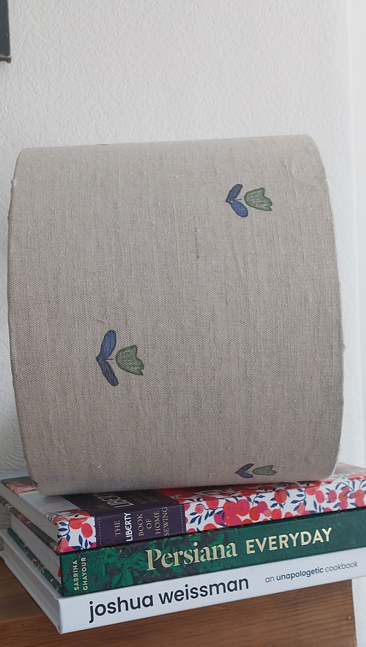 Vintage Linen blue tapered or drum lampshade