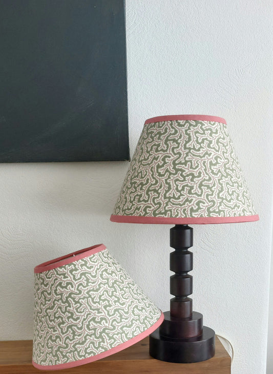 Coolie or tapered Oak leaf green linen lampshade
