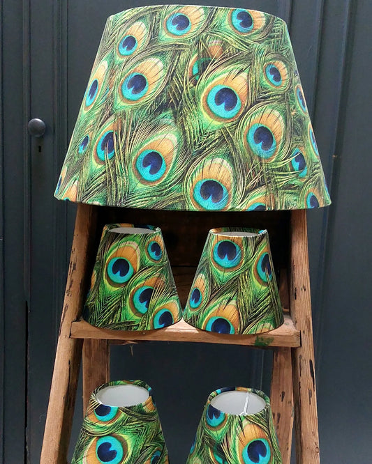 Peacock feather tapered lamp shade
