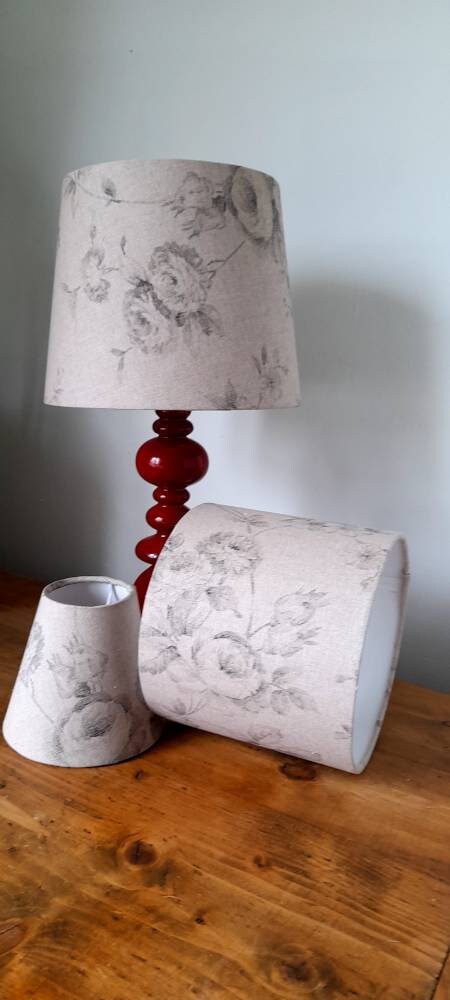 Grey Vintage Roses Linen Handmade Lampshade Tapered/ Drum