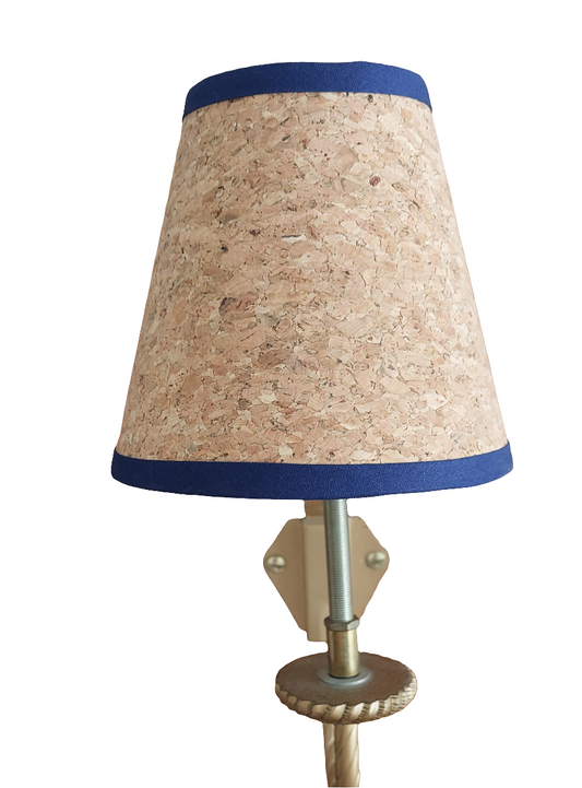 Cork Candle Clip Lampshade with navy trim