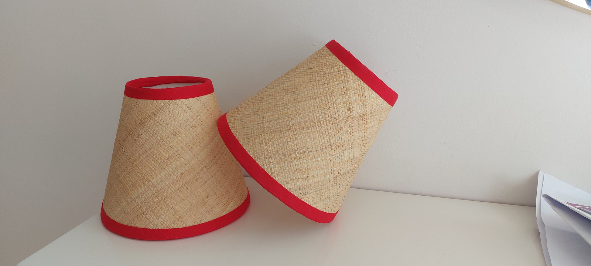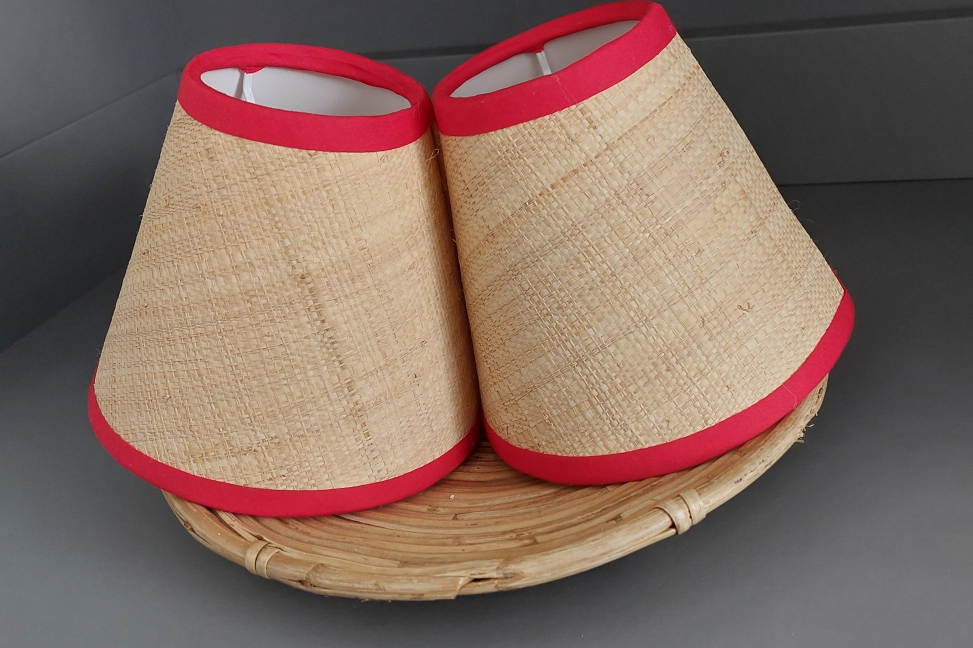 Raffia Candle Clip Lampshade with trim suitable for wall lights, chandeliers, and small bedsides please ask for color trim