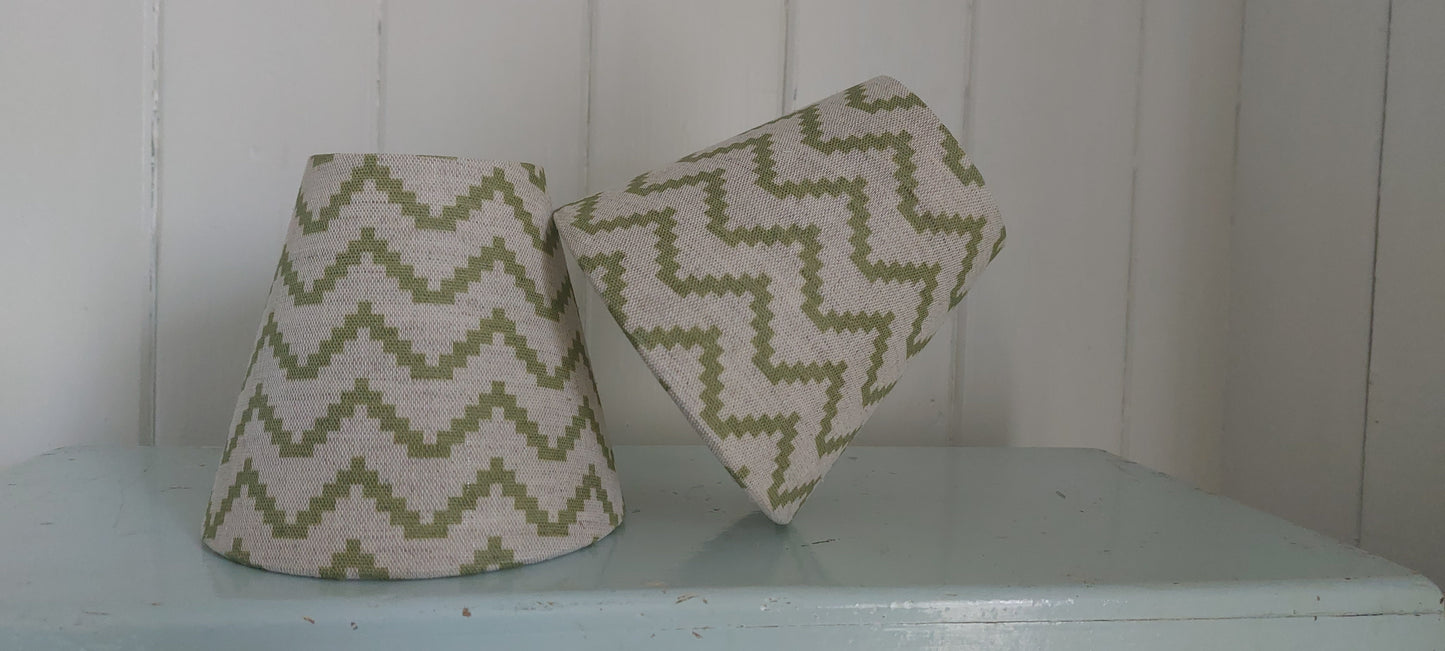 A stunning candle clip green zig stripes lampshade suitable for wall lights, chandeliers, and small bedsides